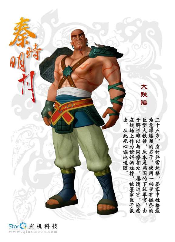 墨家统领之一,身材异常魁梧,是墨家中性格最为急躁爆烈的男子。原本是燕国的下级军官,由于脾性无法与跋扈的燕国大将军晏懿相处,屡遭迫害,险些在战场上作为诱饵牺牲掉,被已成为墨家巨子的燕太子丹救出,从此死心塌地追随墨家。